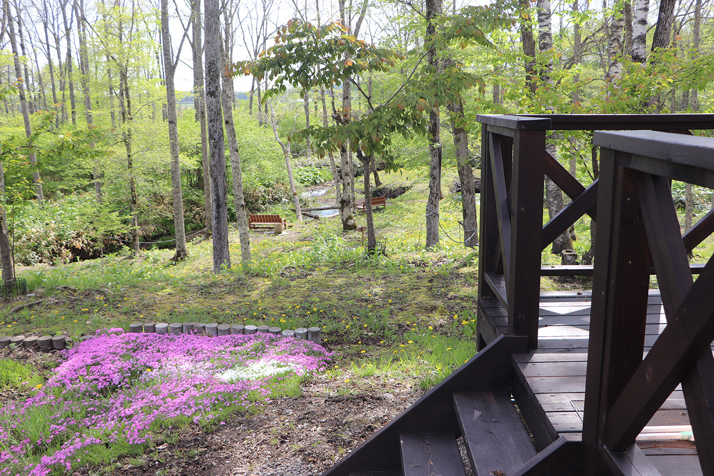 敷地内には私設公園があり、遠くに武佐岳を望み、川のせせらぎを聴きながら、四季折々の花を見たり散歩もできます。
