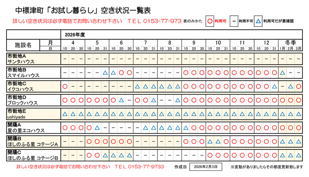 ・2026年度 おためし暮らし空き状況(PDF形式)